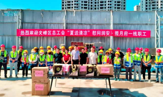 為做好防暑降溫工作,切實保障一線職工的健康安全。6月15日上午,安陽市文峰區(qū)總工會常務(wù)副主席連繼業(yè)、副主席閆妍一行深入集團公司潤安攬月府項目部開展“夏送清涼”走訪慰問。集團公司副董事長李志超、工會主席王福民、攬月府項目總經(jīng)理張帆等對工會領(lǐng)導(dǎo)的到來表示熱烈歡迎。